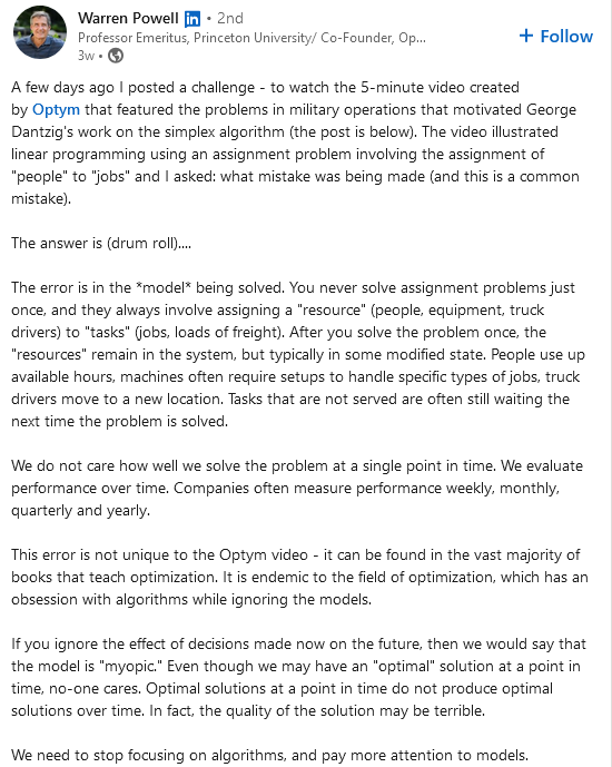 An interesting linkedin post on practical optimization